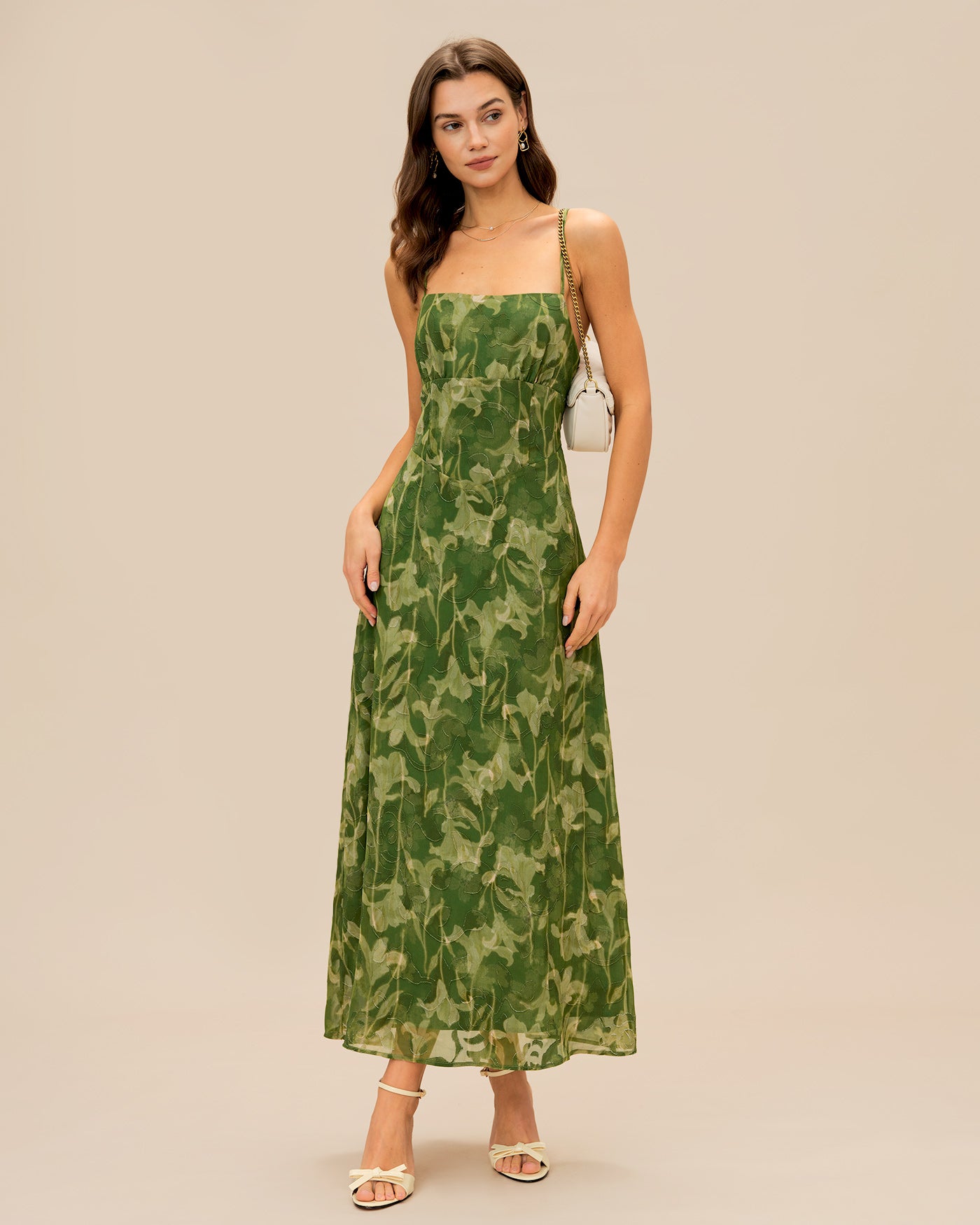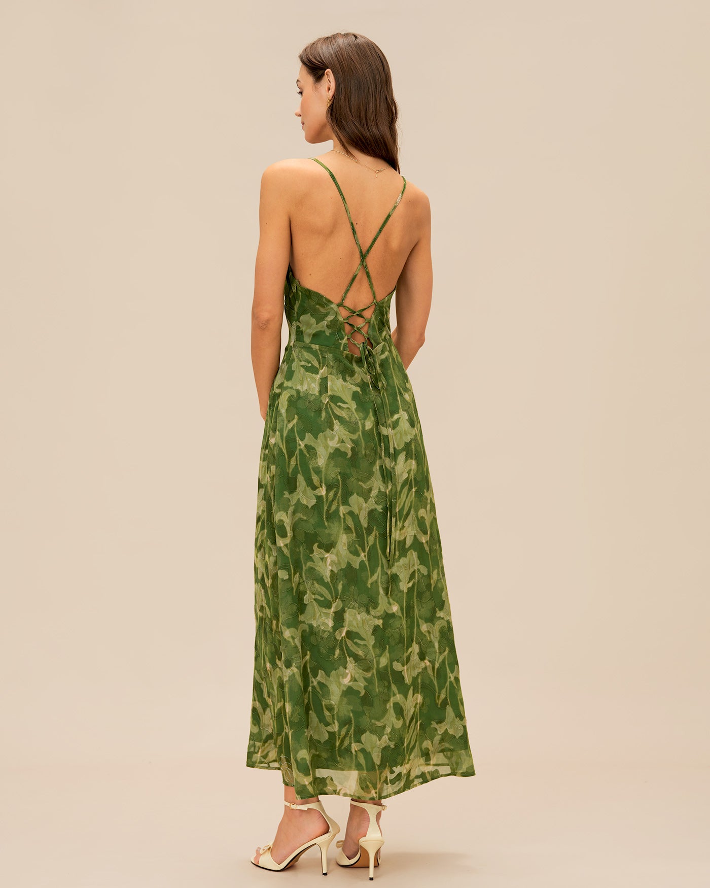 A stylish green floral x cross slip maxi dress designed for a modern, confident look. Perfect for everyday wear with a flattering fit and comfortable feel.