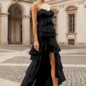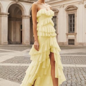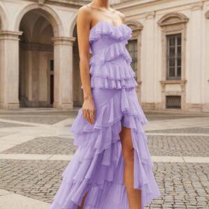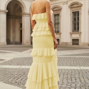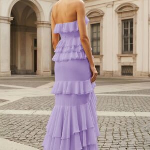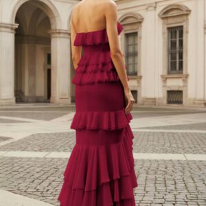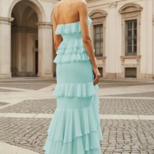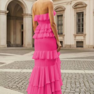 Pink Strapless Sheath Chiffon Ruffled Long Prom Dresses crafted with attention to detail, offering comfort, style, and a flattering silhouette for memorable moments.