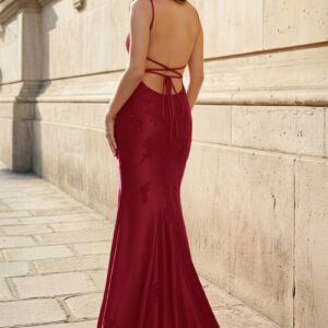 Red V Neck Mermaid Satin Beaded Long Prom Dresses With Appliques crafted with attention to detail, offering comfort, style, and a flattering silhouette for memorable moments.